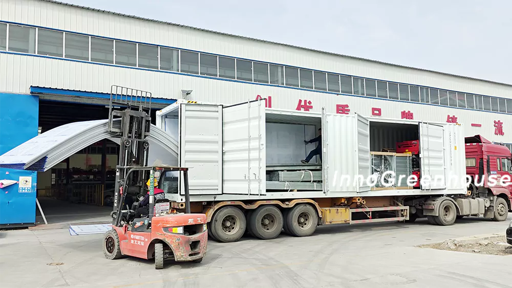 发往加拿大的温室大棚骨架材料装车